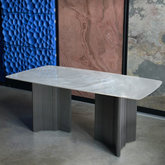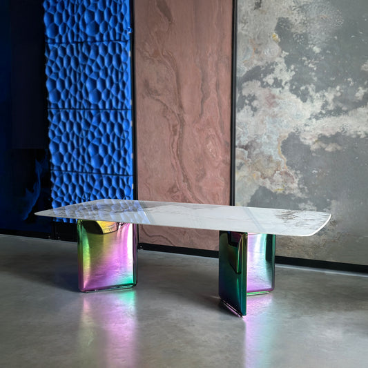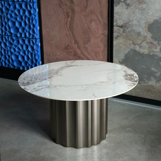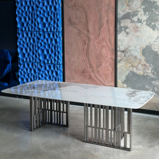 ჩვენს შოურუმში გაქვთ შესაძლებლობა თავად ააწყოთ მაგიდა სასურველი ძირითა და ზედაპირით